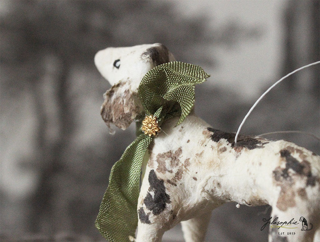 This one of a kind cotton batting ornament is based on a technique which was used in Germany around the turn of the century in 1900 and brings back the glamour of past times.